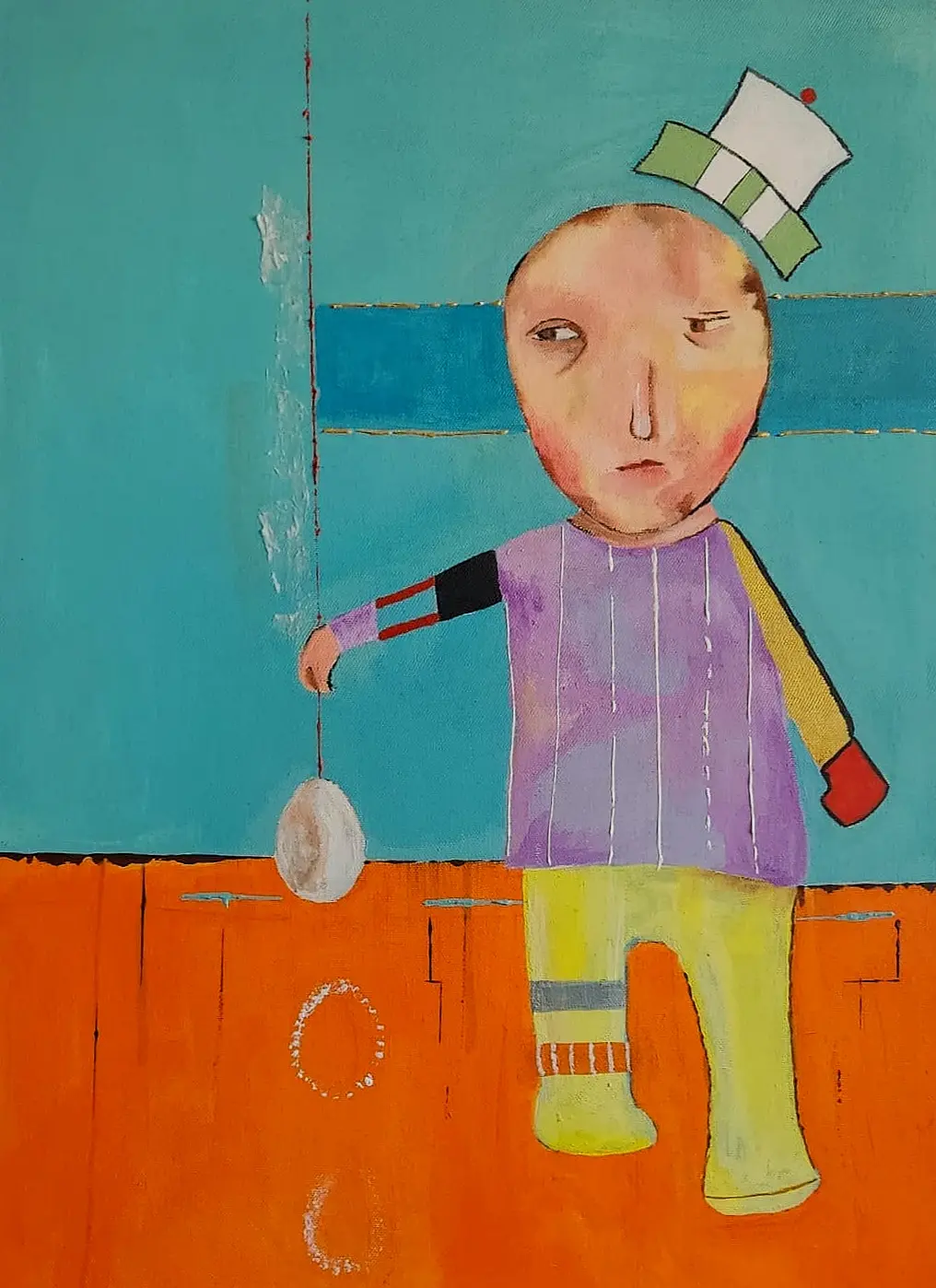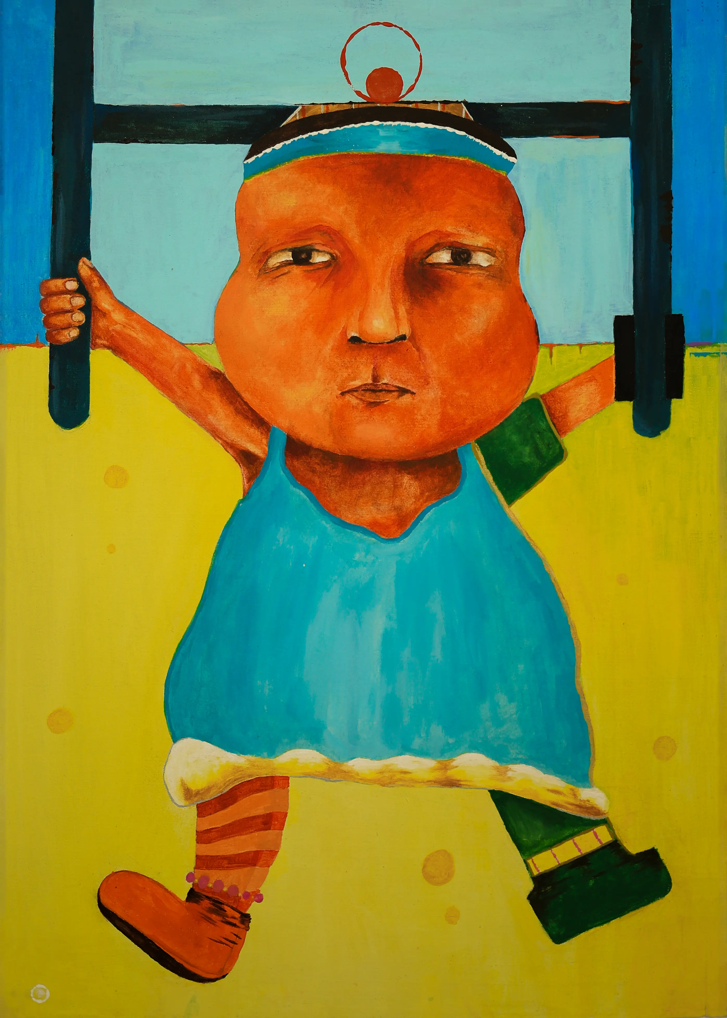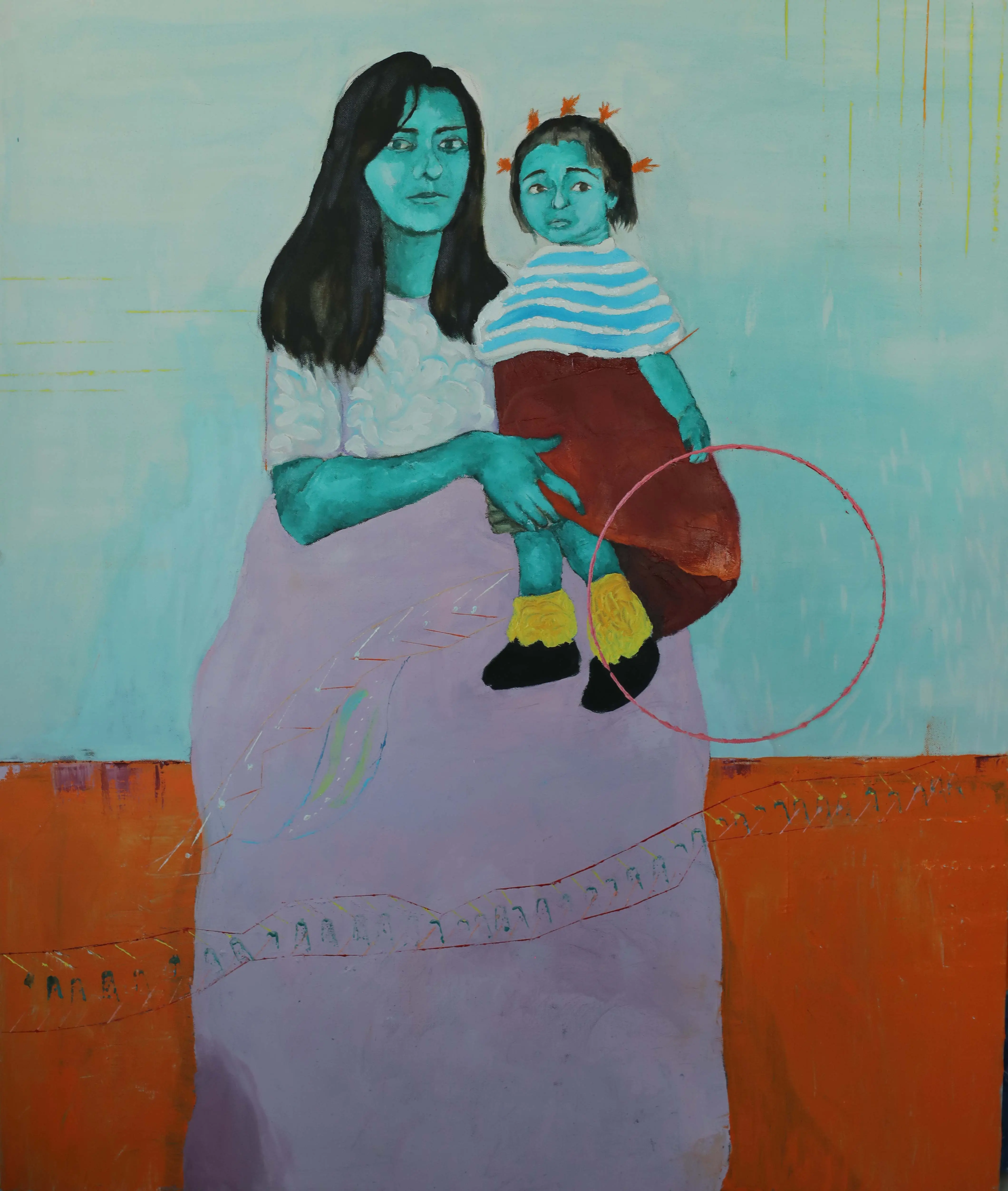 Working primarily with painting and experimental drawing, Abou Saada’s visual language combines figurative elements with symbolic distortions of the body. Her works often feature simplified forms, unusual proportions, and expressive colour. These characters exist within minimal or ambiguous spaces, allowing the focus to remain on the internal narrative of the figure itself.