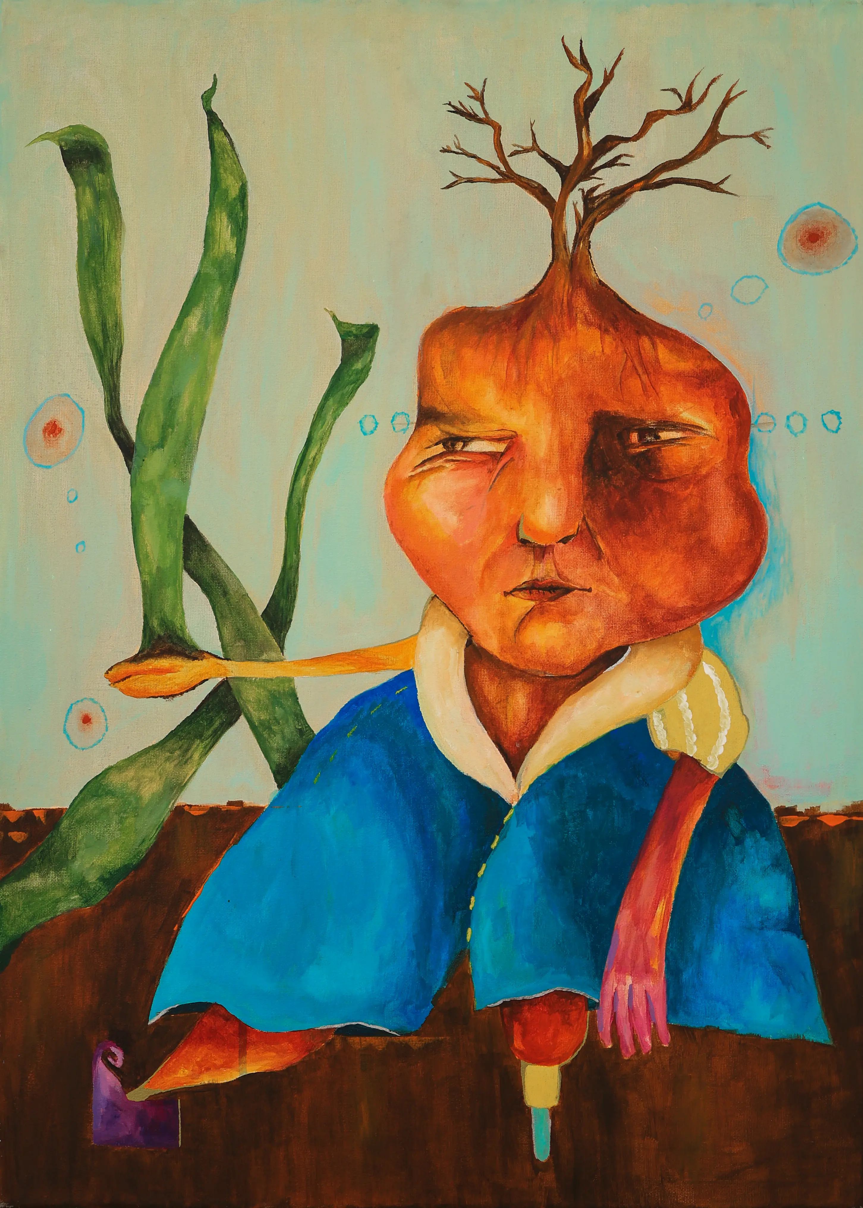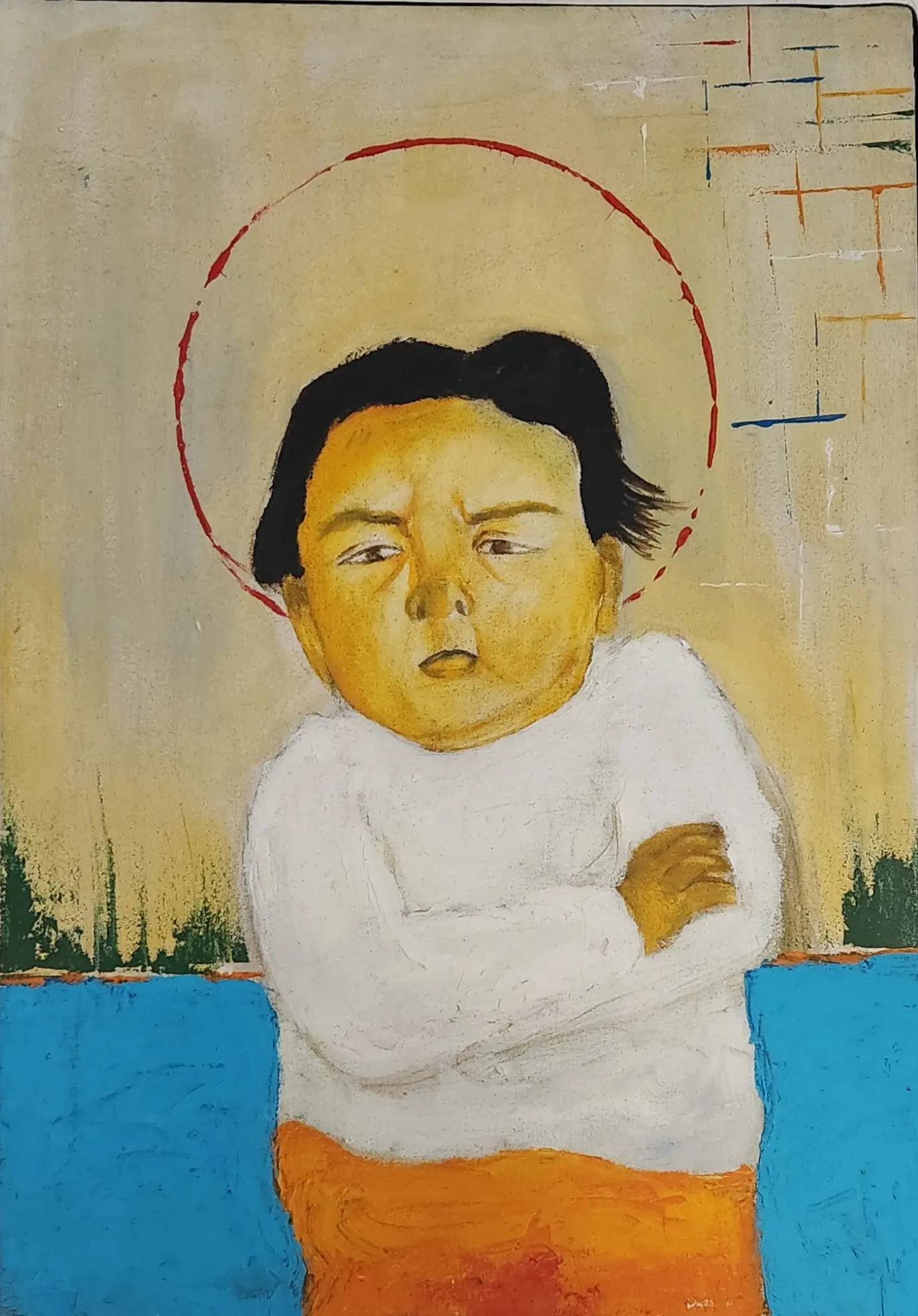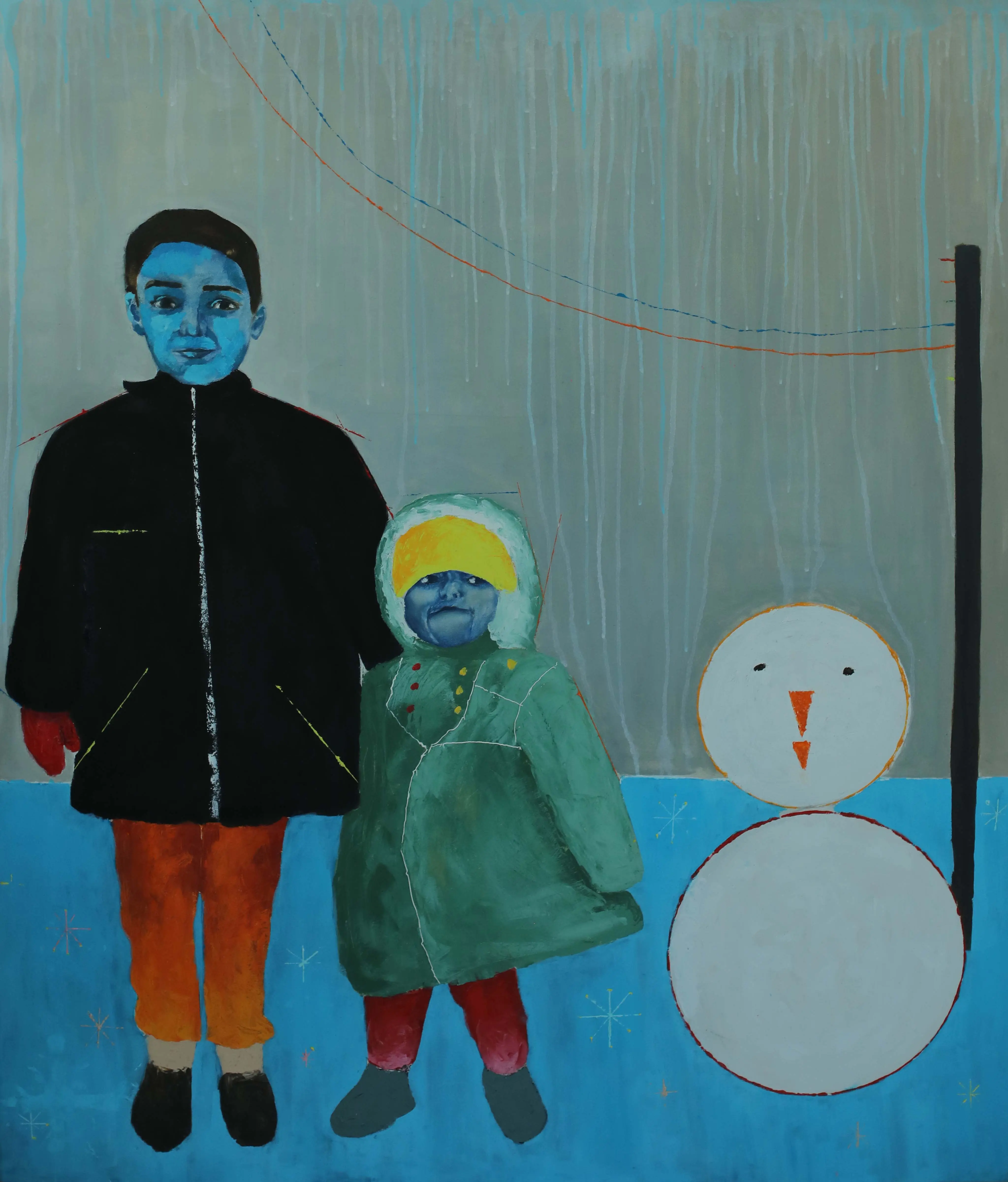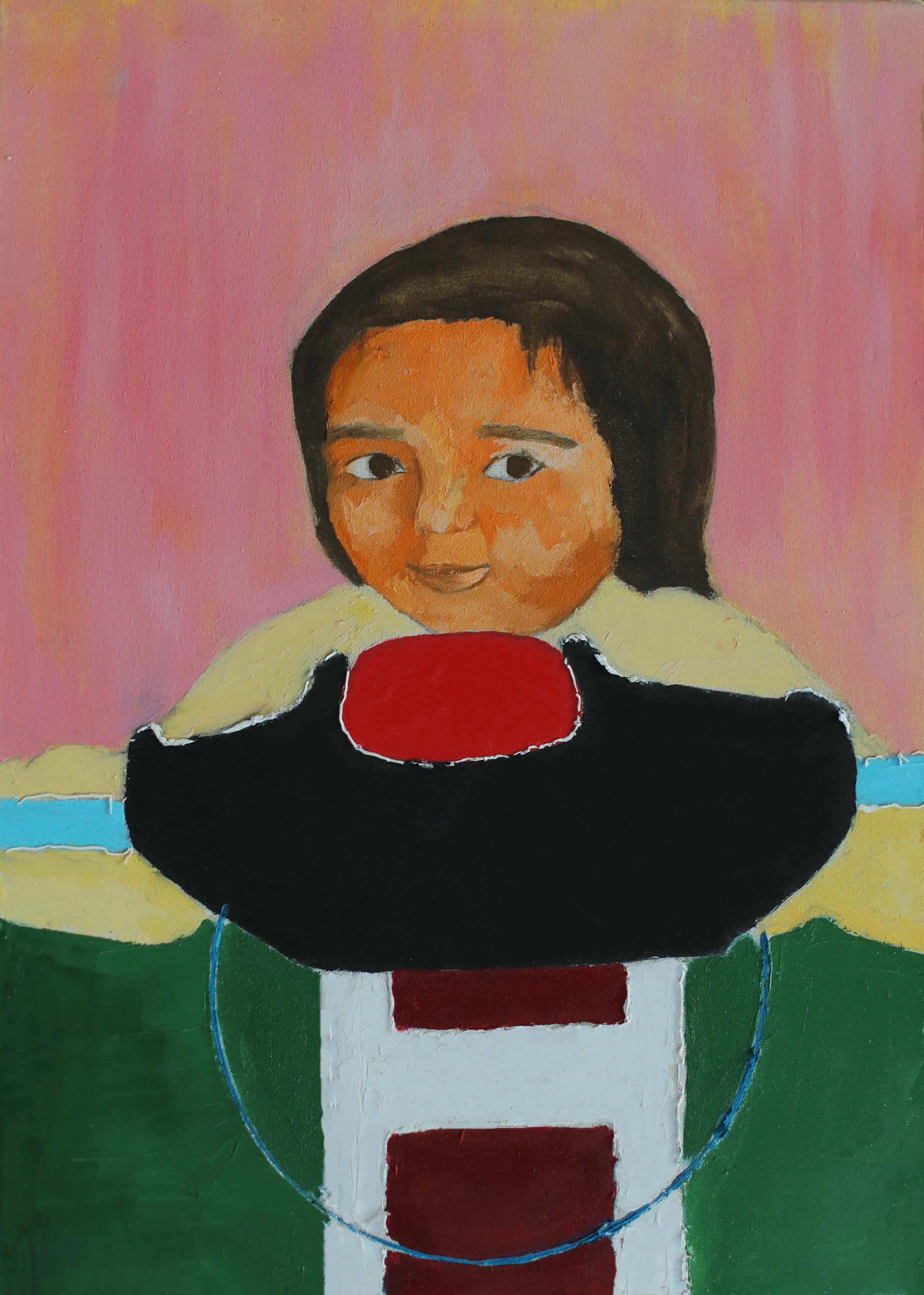 Working primarily with painting and experimental drawing, Abou Saada’s visual language combines figurative elements with symbolic distortions of the body. Her works often feature simplified forms, unusual proportions, and expressive colour. These characters exist within minimal or ambiguous spaces, allowing the focus to remain on the internal narrative of the figure itself.